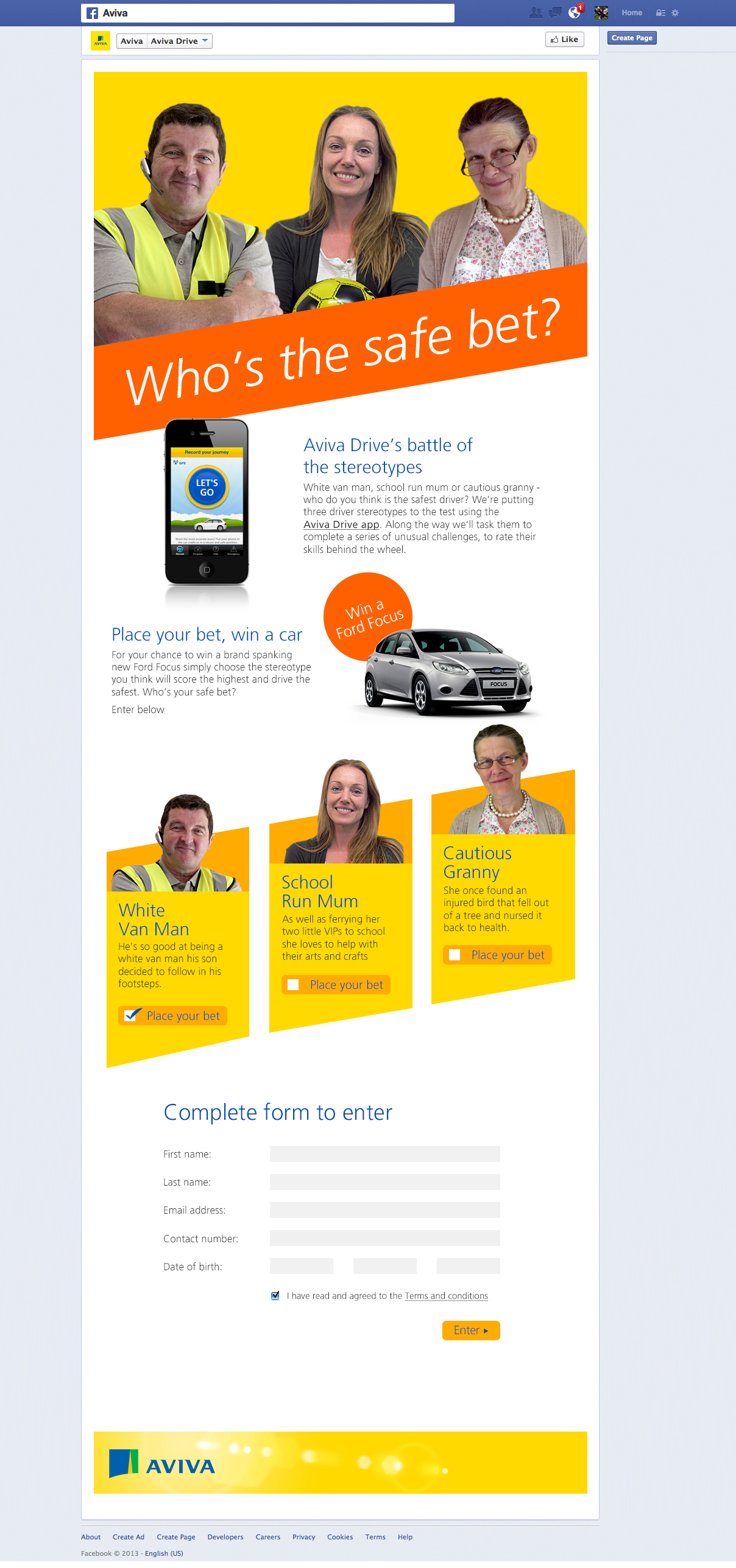 White van man, school run mum or cautious granny – who do you think is the safest driver? In an social campaign we asked the AVIVA fans to place a bet for a chance to win a car. Along the way we tasked our stereotypes to complete a series of unusual challenges, run by Johnny Herbert a F1 Legend.